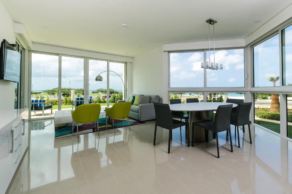 מקום האירוח בלו רזידנסס (Blue Residences) ממוקם בפאלם ביץ' (Palm Beach), ונמצא בסמוך לשמורת ציפורי הבר בובאלי (Bubali Bird Sanctuary). הוא מציע גישה לאינטרנט אלחוטי הזמינה בכל האזורים בתשלום נוסף, גן ובריכת שחיה. הדירות כוללות טלוויזיה, מיזוג אוויר ומרפסת. חדרי הרחצה הפרטיים כוללים מקלחת. מכל החדרים נשקפים נופים לים. התוספות כוללות ערוצי כבלים. חדרים מסוימים מציעים גם מטבח ופינת ישיבה. תוכלו למצוא מגוון של מסעדות במרחק של 2 ק"מ. נמל התעופה קווין ביאטריקס (Queen Beatrix International Airport) נמצא במרחק של 8 ק"מ, ואיגל ביץ' (Eagle Beach) נמצא במרחק של 1.6 ק"מ. חניה ללא תשלום זמינה באתר.